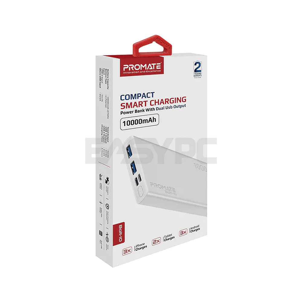 Promate BOLT-10 10000 mAh Powerbank White