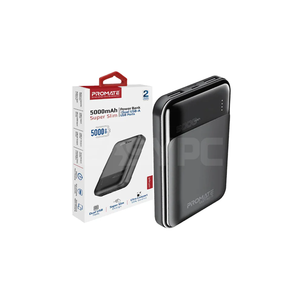 Promate VolTag-5 5000mAh Super-Slim Power Bank with Dual 2A USB Ports Black